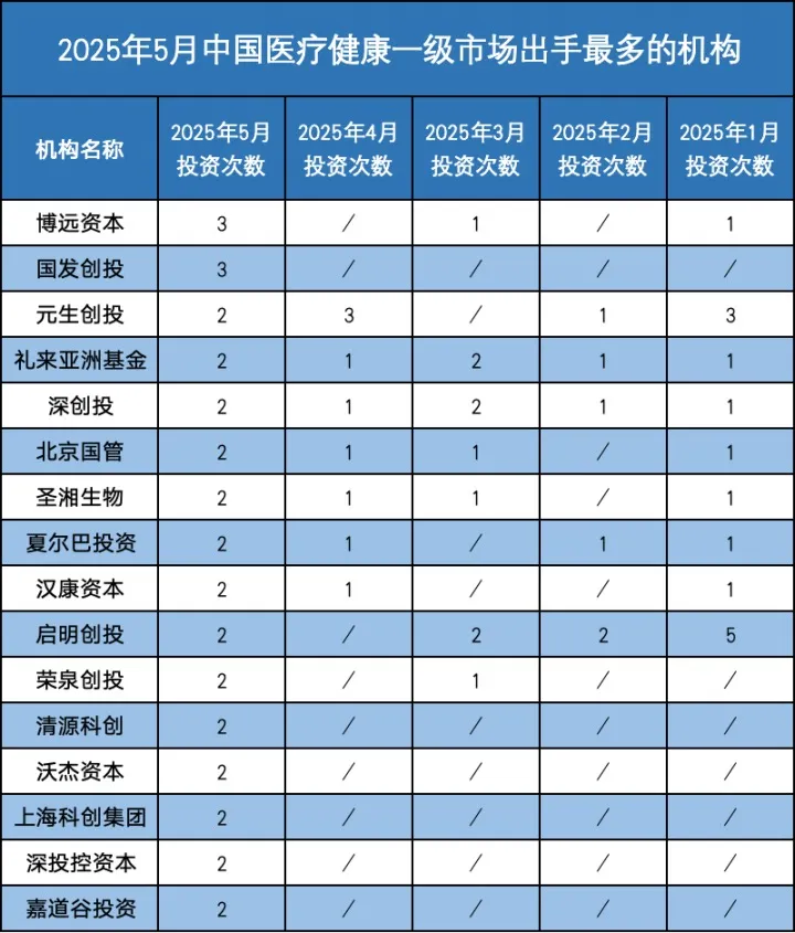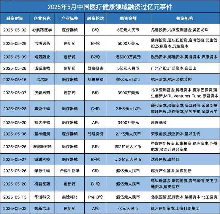 转眼间,2025年即将过去一半。在过去的5月份,国内医疗健康一级市场投融资增长之势明显。