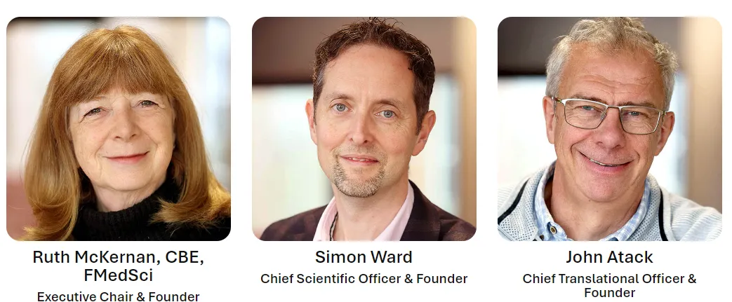 John Atack教授(首席转化官)、Simon Ward教授(首席科学官)和Ruth McKernan
