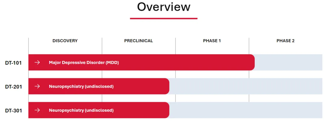 新资金将使Draig能够在2025年将其主要候选药物DT-101(下一代AMPA受体正变构调节剂(PAM))推进到重度抑郁症的2期试验中。DT-101的设计目的是在不影响安全性的情况下有效调节AMPA受体。这在60多名受试者的耐受性良好的1a期项目的数据中得到了证实,该项目清楚地证明了使用脑磁图新技术的靶点参与,并将在即将举行的科学会议上公布。
