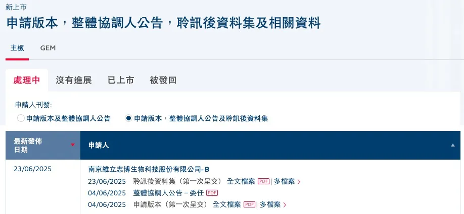 6月24日,港交所官网显示,南京维立志博生物科技股份有限公司(以下简称:维立志博)通过港交所聆讯即将上市,摩根士丹利和中信证券为联席保荐人。
