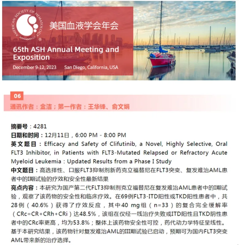 克立福替尼临床研究以Poster入选2023第65届美国血液学会ASH大会交流