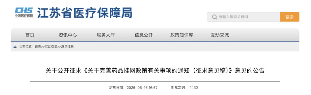 6月16日,江苏省医保局发布《关于公开征求〈关于完善药品挂网政策有关事项的通知(征求意见稿)〉意见的公告》,成为第14个公开挂网规则意见稿的省份(江苏省全文见文末,各省文件名称及征求时间等见后文)。