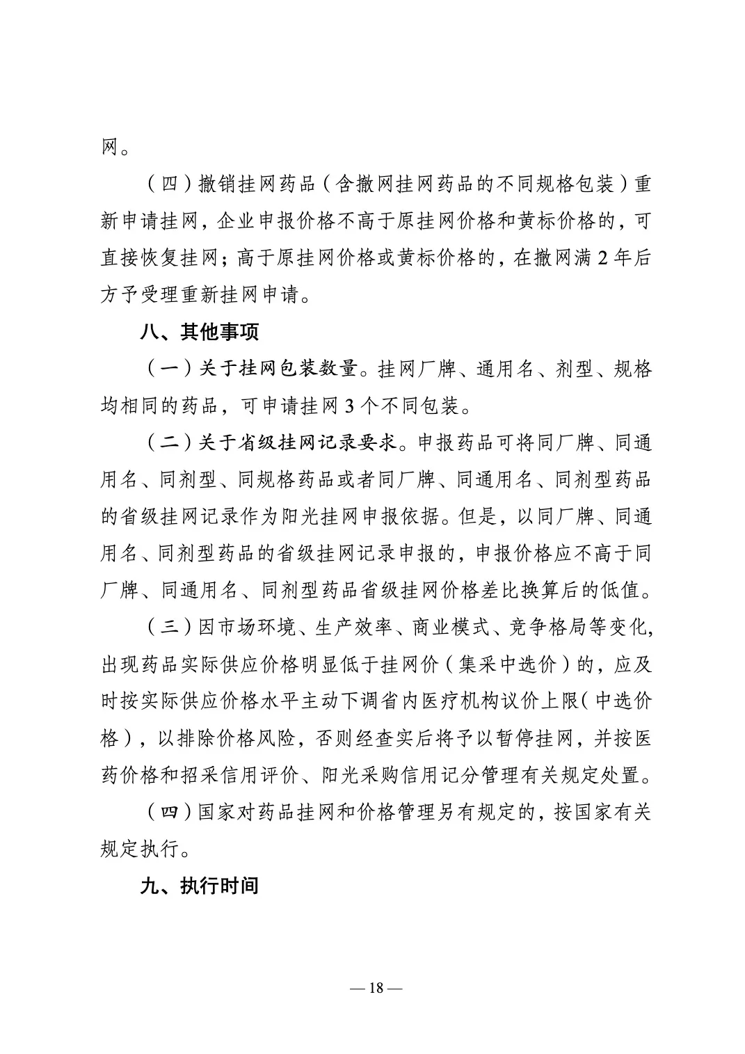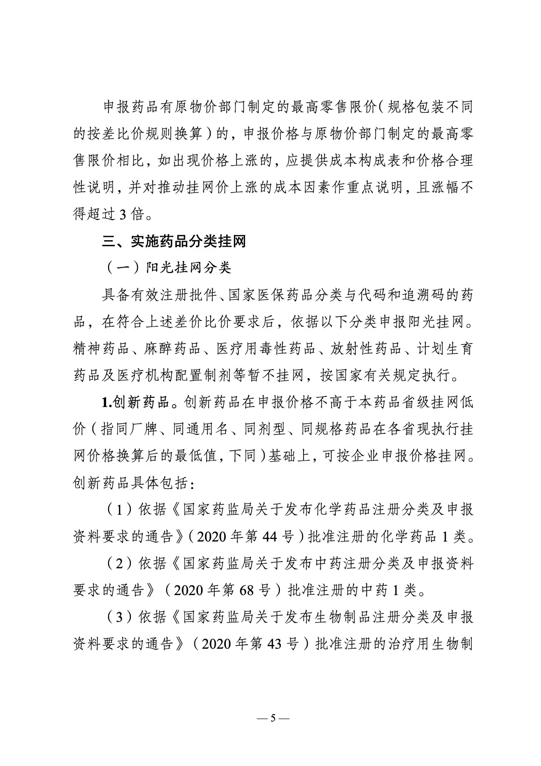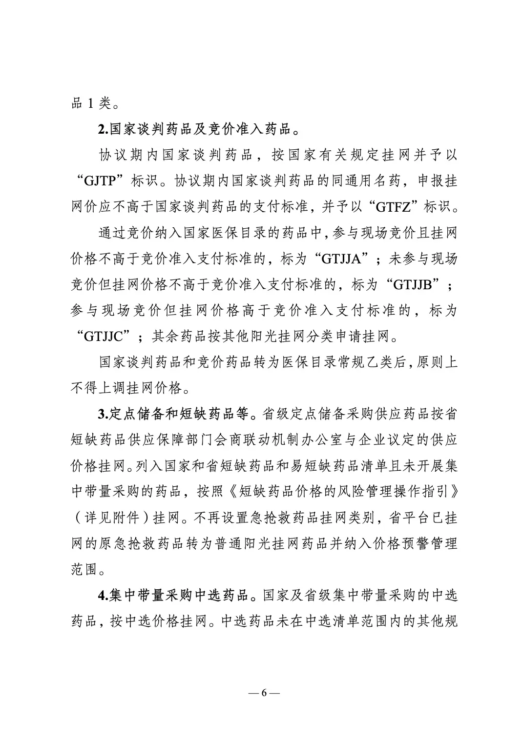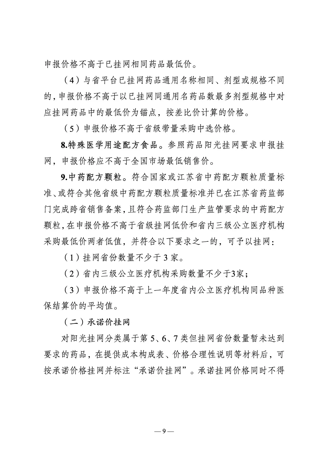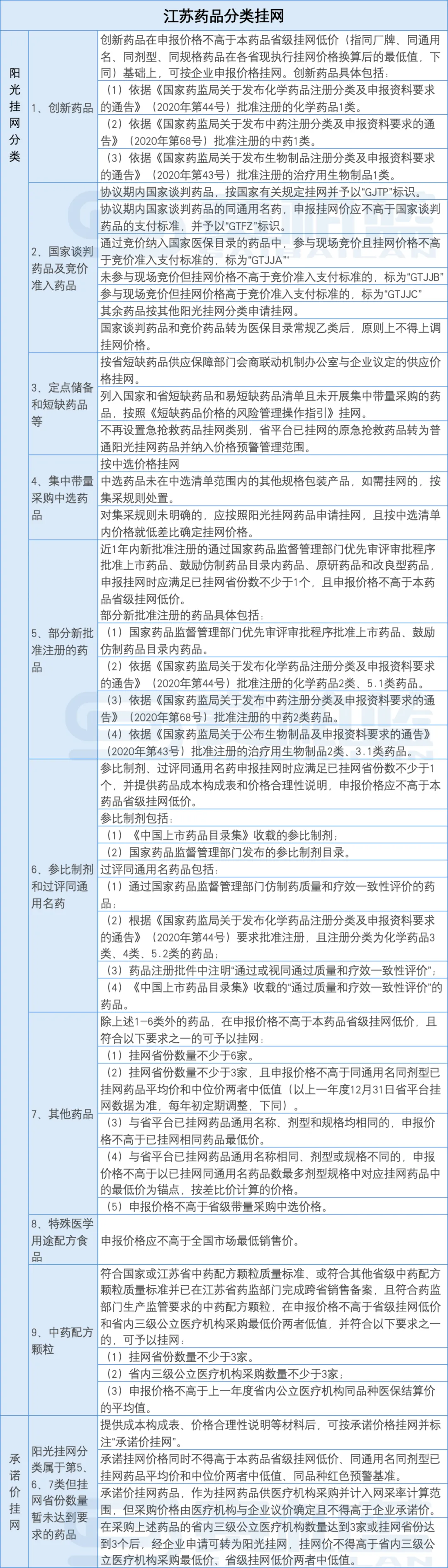在挂网类型上,江苏也在此次的文件中划分了创新药品、国家谈判药品及竞价准入药品、部分新批准注册的药品、中药配方颗粒等9类阳光挂网分类,并明确了定义及已挂网省份数量要求等。