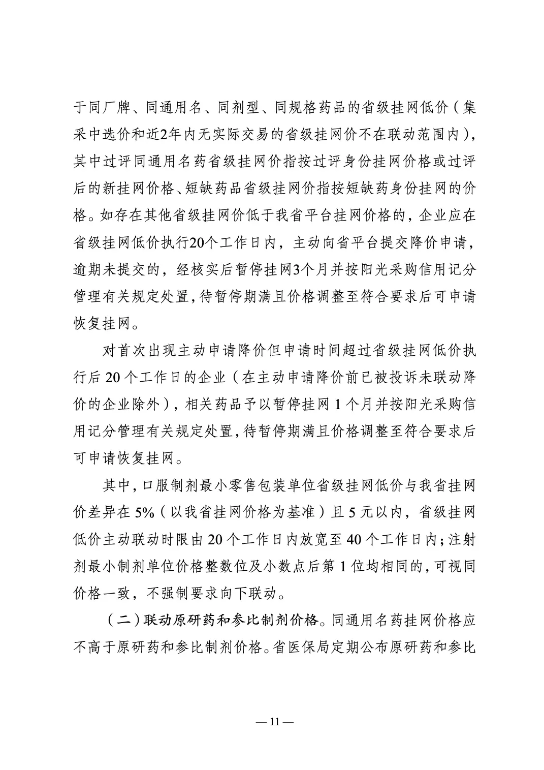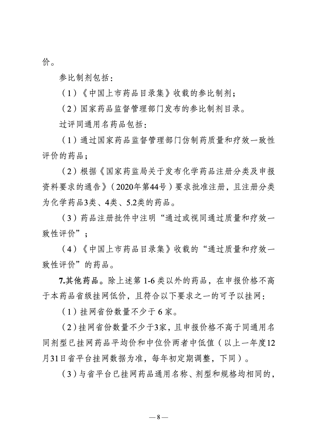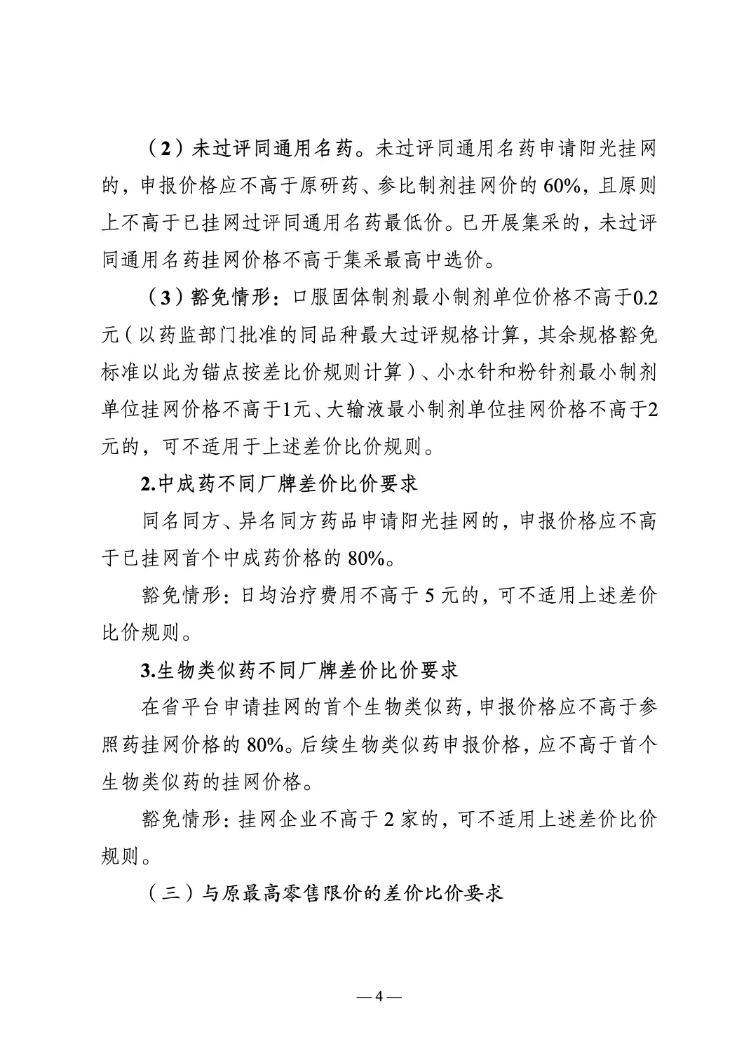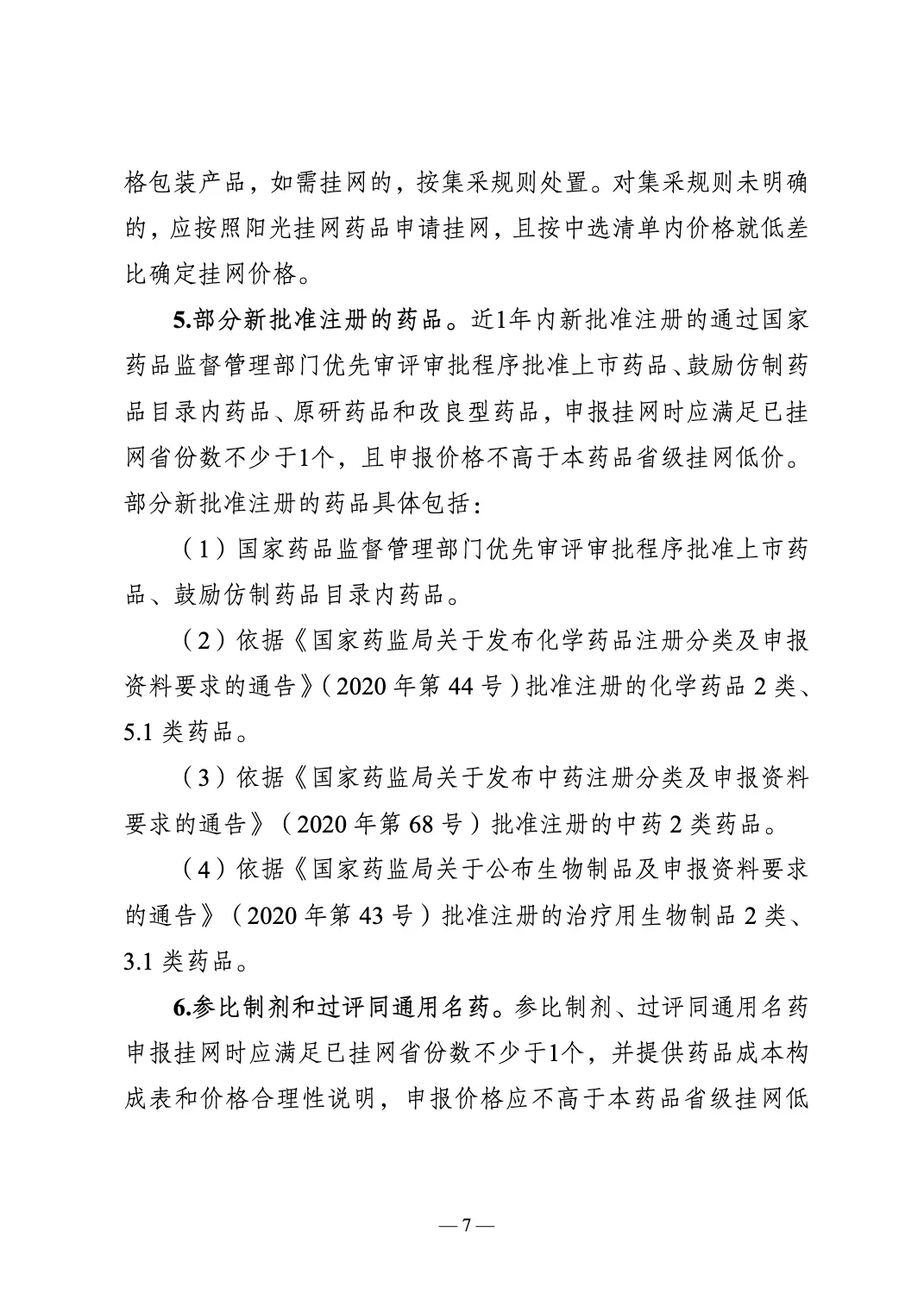 例如,近1年内新批准注册的通过国家药品监督管理部门优先审评审批程序批准上市药品、鼓励仿制药品目录内药品、原研药品和改良型药品,申报挂网时应满足已挂网省份数不少于1个,且申报价格不高于本药品省级挂网低价。