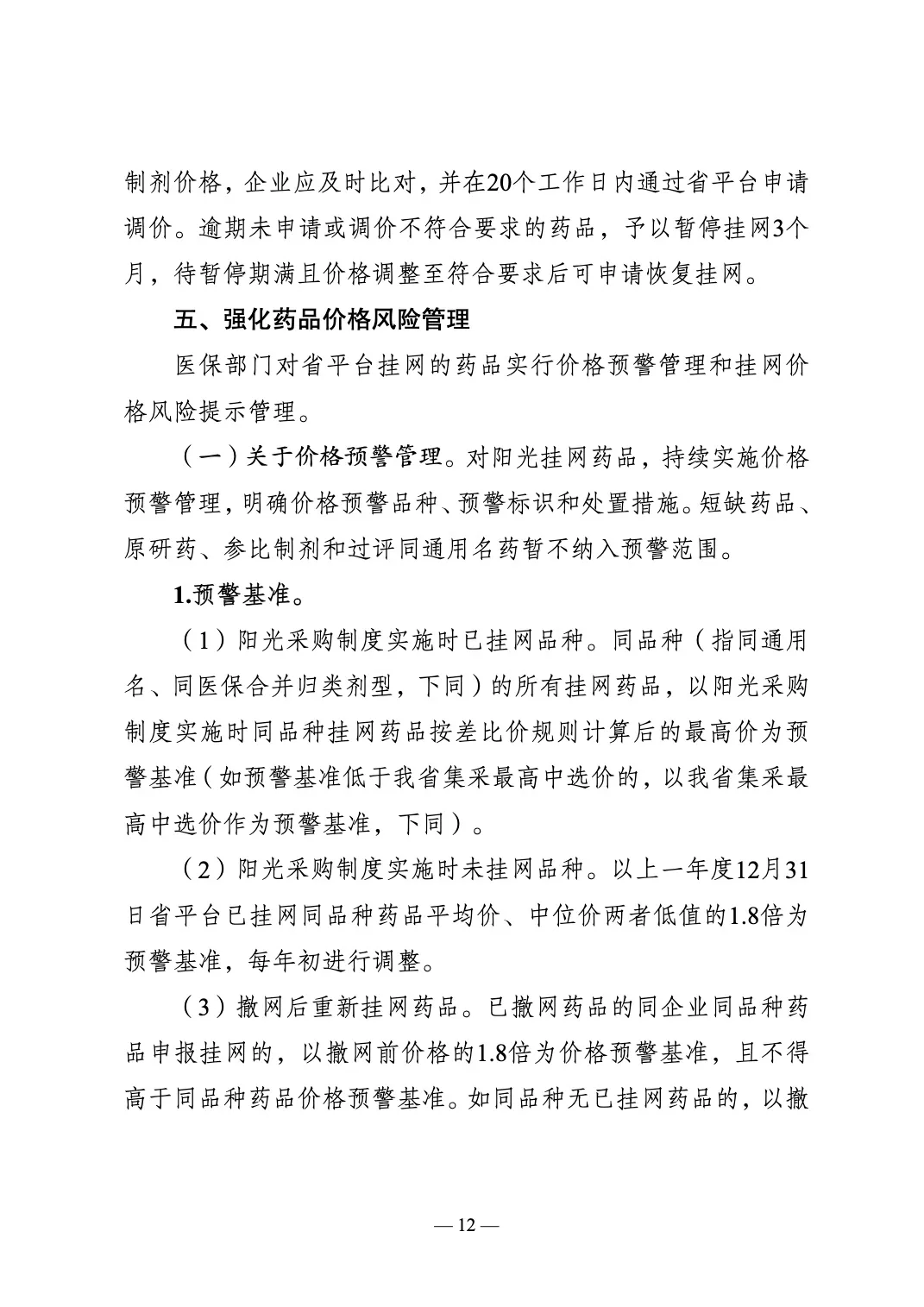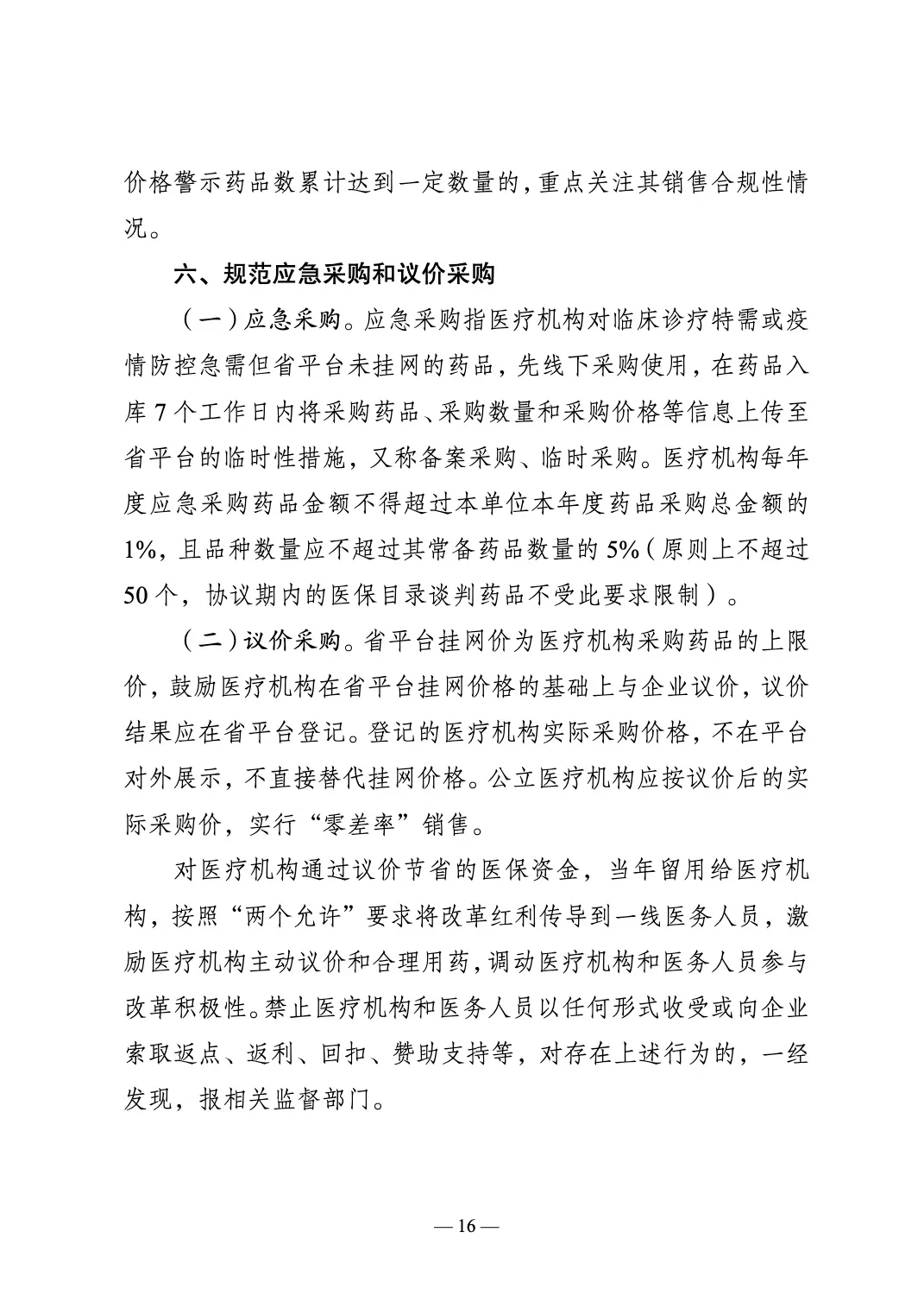 各省级文件中的差异主要表现在议价采购、药价风险采购等方面。