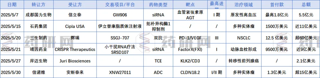 2025年5月BD list | 药研网团队整理