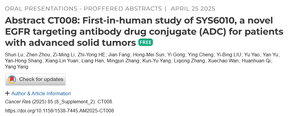 上述核心临床数据表明,SYS6010在晚期实体瘤患者中表现出可耐受的安全性和积极的疗效,尤其对EGFR-TKI耐药或EGFR野生型的nsq-NSCLC患者疗效显著。
