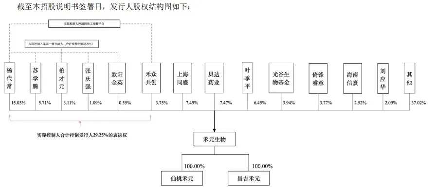 截至招股说明书签署日,禾元生物实际控制人杨代常控制公司表决权比例为29.25%。同时,杨代常一直担任公司董事长及总经理,是公司多项核心发明专利的发明人,全面负责公司研发、生产、销售工作,能对公司股东(大)会、董事会的投票表决及公司经营决策产生重大影响。