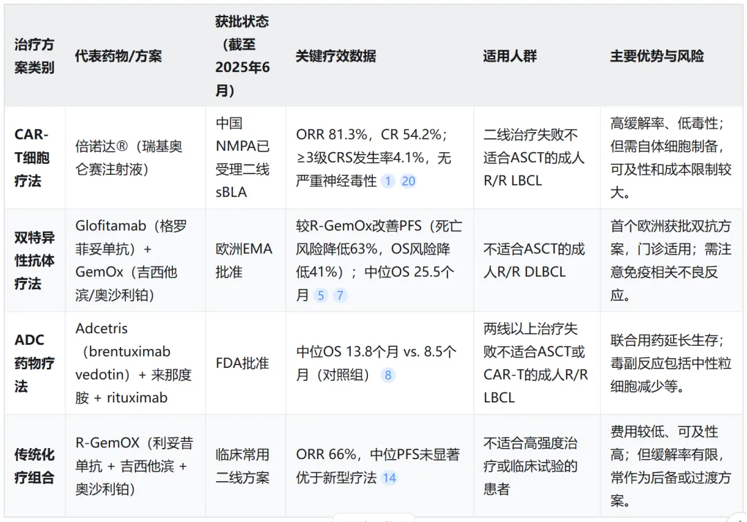 可以看到,CD19 CAR-T、CD20xCD3双抗联用化疗均在这个领域取得不错的疗效,甚至有望成为后线R/R DLBCL临床常用或标准方案。