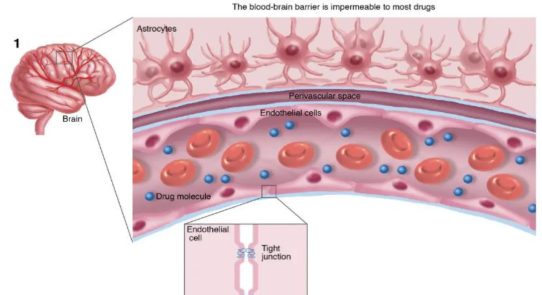 CNS领域长期面临三重科学挑战,导致研发成本与风险远超其他领域。首先是疾病机制不明,多数CNS疾病致病机理仅停留在假设阶段,例如阿尔兹海默病的β淀粉样蛋白假说虽推动多款药物研发,但临床转化率极低;其次是血脑屏障阻隔,98%的小分子药物无法有效穿透,大分子递送更是难题,严重限制药物设计空间(图1);最后是临床终点主观,症状评估依赖量表,动物模型预测性差,导致临床试验失败率高。1995年-2007年间,FDA批准CNS药物的成功率(6.2%)不足非CNS药物(13.3%)的一半。