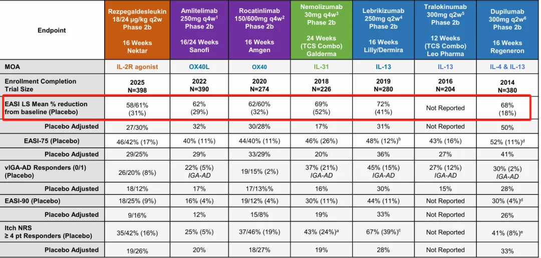 值得一提的是,虽然358在2b期研究中表现优异,但却仍未达到AD标杆药物Dupixent的标准。