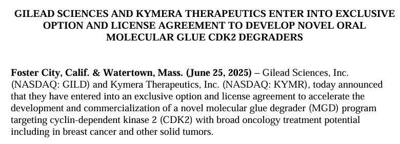 6月25日,吉利德科学和Kymera