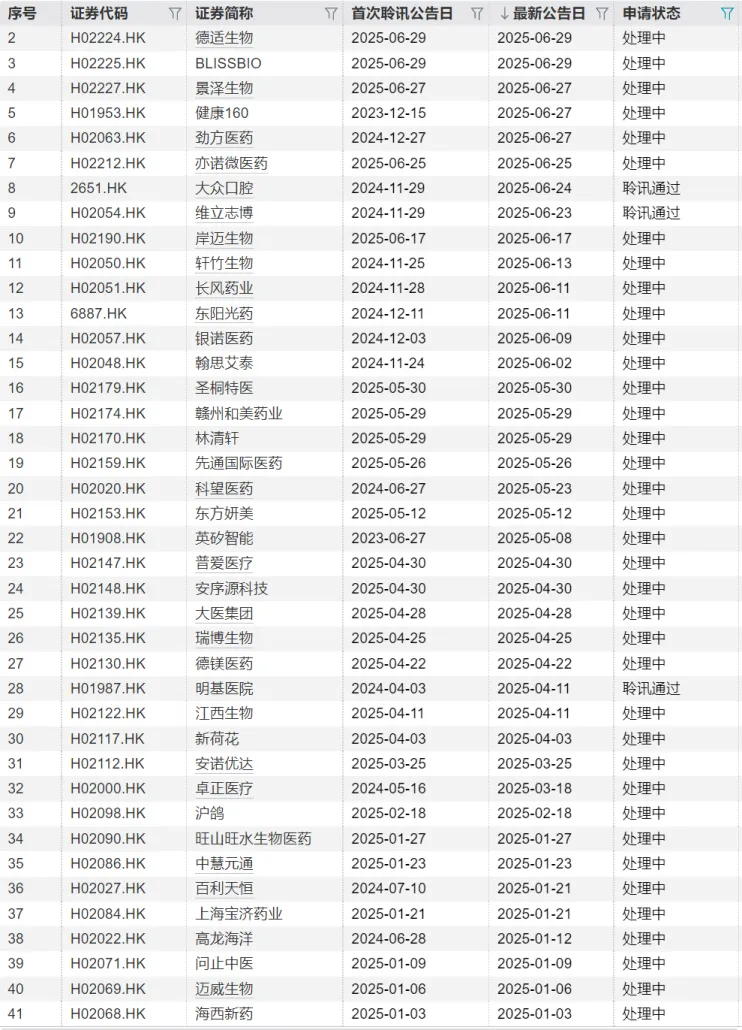 从数据上看,医疗健康企业港股IPO的劲头仍在继续,有41家企业在“等待上市”。