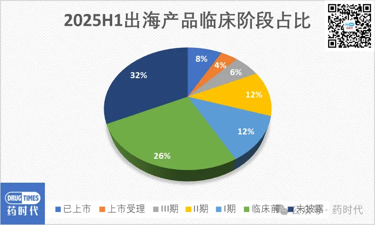 从在研阶段来看,2025年上半年,中国创新药出海资产仍以早期阶段为主(临床前、I期、II期),占比超过50%。这一趋势反映了当前中国药企的现实处境:在资本寒冬下,现金流是企业面临的最大挑战。并非所有企业都有能力自主完成全球开发,即便拥有数据优异的早期资产,融资仍是关键难题。因此,通过技术授权或产品授权的方式,借助国际企业或平台实现“借船出海”,已成为一种高效的全球化路径。