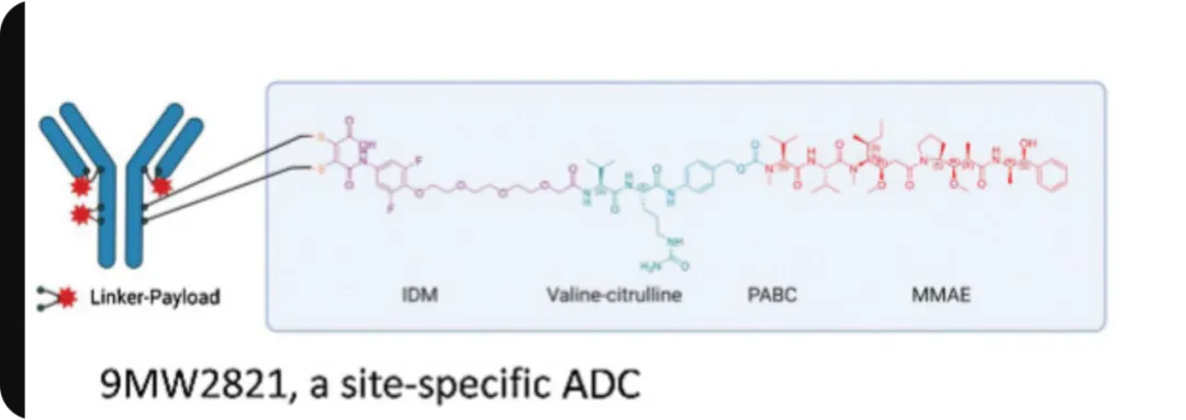 这点主要看它的ADC平台IDDC,该平台分为几块技术。DARfinity主要是偶联工艺上,用来开发均一性更高,DAR值更加稳定的ADC,这也是9MW2821比padcev更加稳定的主要原因。定点连接子IDconnect技术则可以在研发过程中提供稳定的链接二硫键,这将大大提高所研发ADC在血浆中代谢的稳定性。LysOnly技术则是条件释放技术,可以提高ADC在肿瘤微环境中的稳定性,减少off-tumor effects。