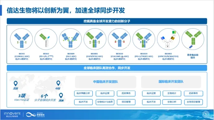 目前,信达肿瘤管线已拥有超过10款全球布局的下一代创新分子,包括IBI343、IBI363、IBI3009、IBI3001、IBI3020、IBI3014(PD-L1/TROP2双抗ADC)、IBI3003等,并在中国、澳洲、美国多地积极开展国际多中心临床试验(MRCT)。