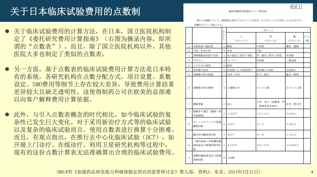 图4. 关于日本临床试验费用的点数制
