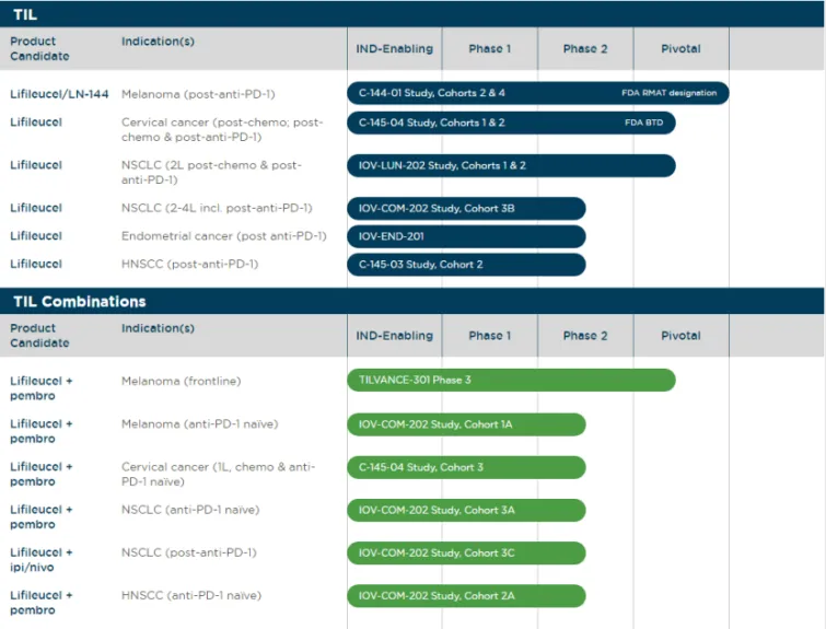 以下为Iovance的研发管线布局(截止2025年6月):