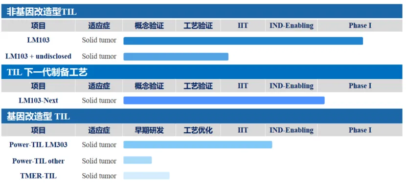 苏州蓝马医疗研发的TIL疗法LM103,治疗晚期黑色素瘤。LM103是中国研究人员自主研发的自体肿瘤浸润淋巴细胞(TIL)疗法,专为亚洲黑色素瘤患者设计,需从患者肿瘤组织中提取天然肿瘤特异性T细胞,经体外高效扩增后回输。采用独特的Feeder生产工艺。