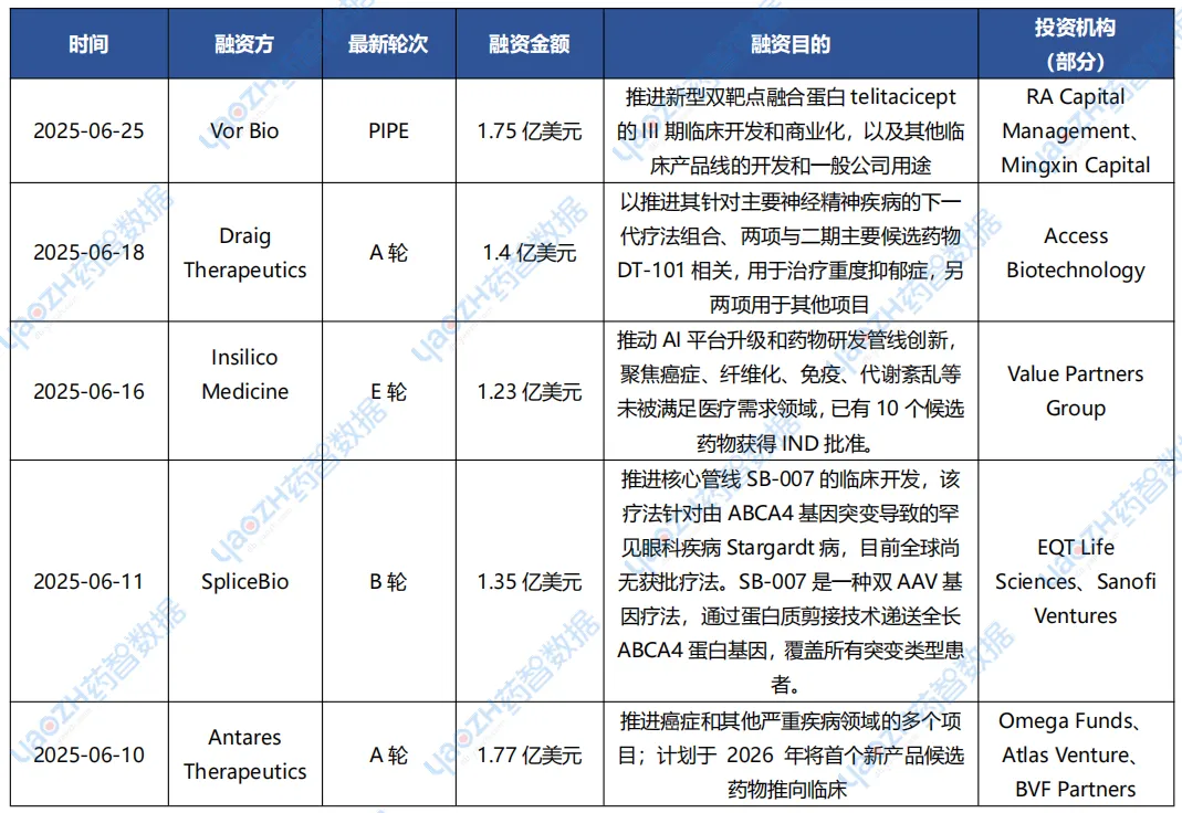 据药智数据【投资格局】统计,2025年6月共316条医药交易事件、168条医药投融资事件和29项企业并购事件发生,重点交易信息如下,完整清单详见市场投资格局数据库。