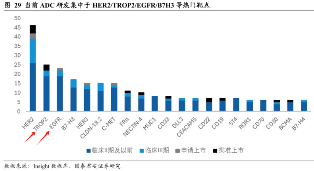 其次,Trop2、EGFR这两大靶点在单抗ADC均获得成药性的验证。