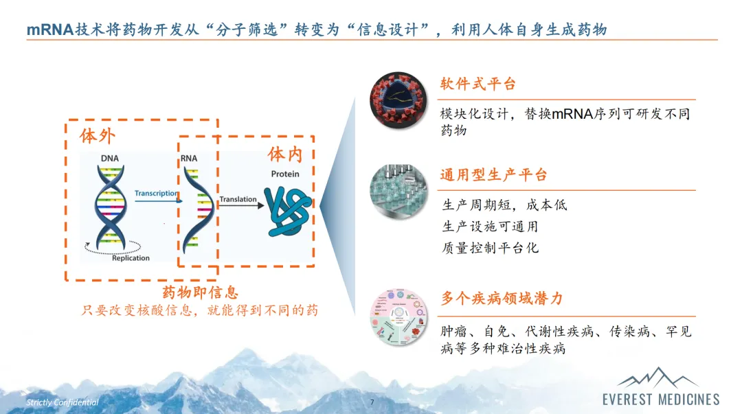 罗永庆曾经在接受E药经理人采访时便说:“从一开始,我们就认为mRNA技术在肿瘤治疗上会有一席之地,而且是突破性的。”他亦在此次研发日上再次强调:“mRNA技术集合了软件式平台、通用型生产平台的优势,具备覆盖从肿瘤到自免、代谢性疾病、传染病、罕见病等多种难治性疾病的药物开发能力。”
