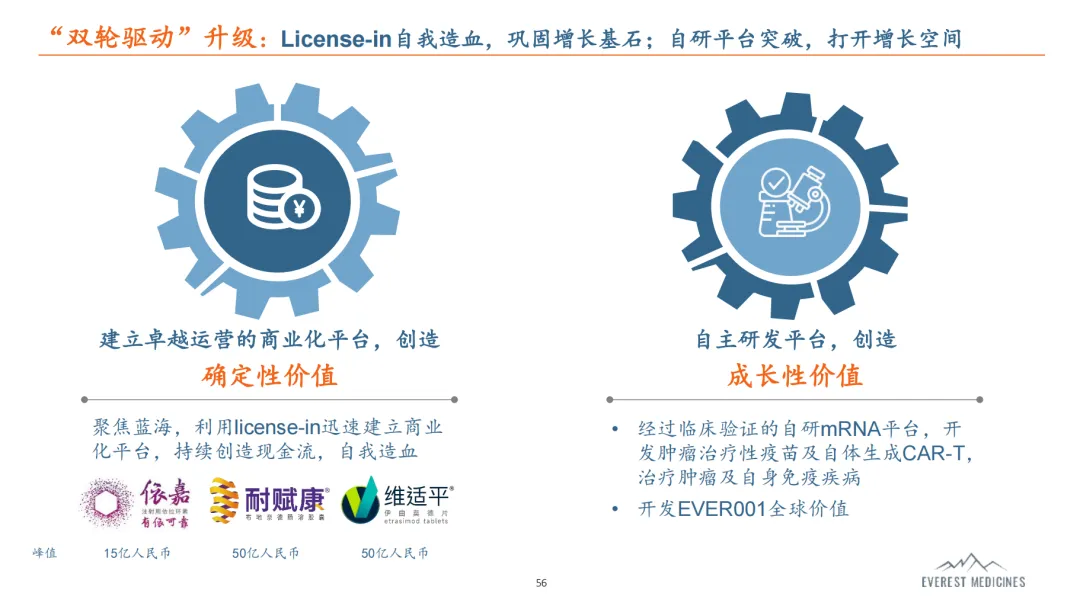 这种战略的主动性来自于耐赋康、依嘉和伊曲莫德三大商业化产品,追求极致的商业化效率而快速打通的盈利闭环;更来自于对突破性mRNA技术和自体生成CAR-T的前瞻性判断和执着,提前占位蓝海大赛道,逐步打开巨大的价值成长空间。