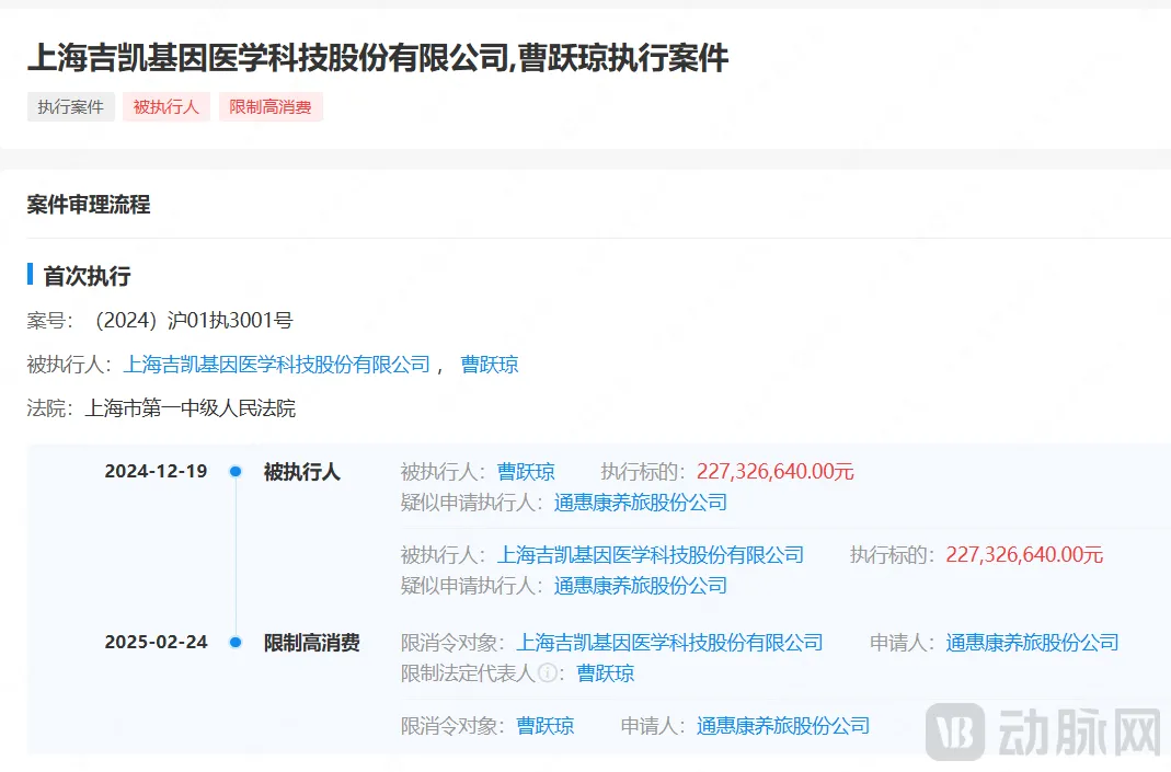 而就在行业争论谁对谁错的时候,一部分医疗企业已经因为“回购”率先成为了牺牲品。近日,由复旦女科学家曹跃琼掌舵的生命科学老牌企业吉凯基因,因为无力支付2.27亿元的回购债务,被股东告上法庭,被列为失信被执行人。这并非个例,破产的mRNA明星企业斯微生物、被限高的NGS独角兽世和基因以及停工停产的肿瘤精准诊疗领域佼佼者至本医疗等,都在当前陷入了“回购”的漩涡。