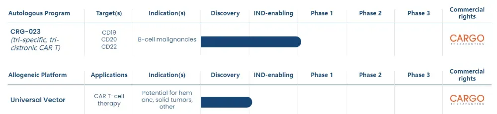 2025年3月,近日,CARGO宣布重大运营战略调整,包括暂停CRG-023开发项目并裁员90%,而此次暂停CRG-023及同种异体平台的开发,主要因效益风险比不足,同时节省现金并最大化股东价值。