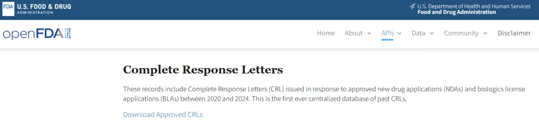 这些历史档案已在FDA的开放数据平台(openFDA)上线。根据FDA的说法,此次发布的CRL是“初始批次”,未来还将继续从档案库中发布更多CRL,并持续探索提高决策透明度的方式。