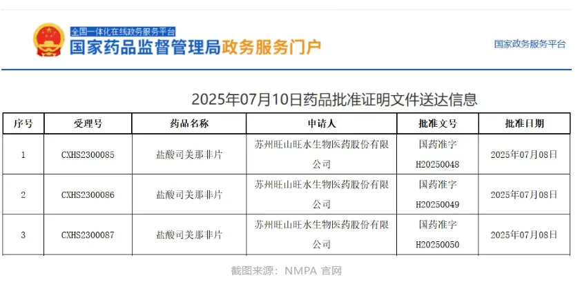 2025年7月8日,由中国科学院上海药物研究所沈敬山/蒋华良/朱维良团队、中国科学院新疆理化技术研究所阿吉艾克拜尔·艾萨团队和苏州旺山旺水生物医药股份有限公司等单位合作研发的1类新药昂伟达®(通用名:盐酸司美那非片;研发代号:TPN171)获得国家药品监督管理局(NMPA)批准上市,用于男性勃起功能障碍(ED)的治疗。