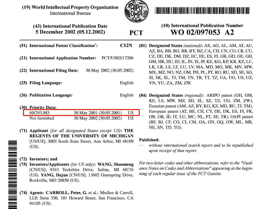 在亚盛医药创立之前的2001年,密歇根大学就向世界知识产权组织提交了Bcl-2抑制剂AT-101的专利申请,而密歇根大学教授杨大俊博士与王少萌博士正是专利发明人。在当时来说,AT-101就相当于一款来自于未来的产品,因此杨大俊博士与王少萌博士在2003年成立了Ascenta Therapeutics(亚生生物),旨在实现AT-101的产业化落地。
