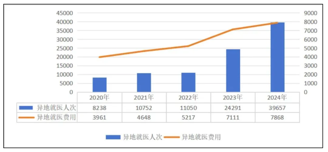 2020年-2024年全国异地就医人次和就医费用
