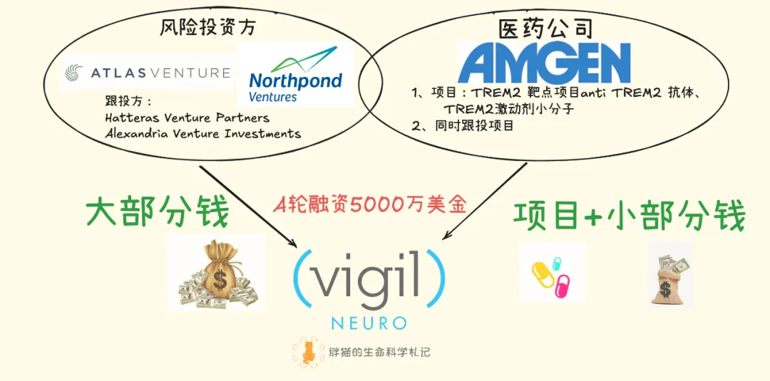 这个模式的底层逻辑是安进出项目(也出了点小钱),风投出钱,成立了Vigil。