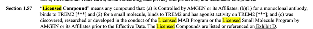 它的核心项目有两个,都是靶向TREM2靶点,分别为大分子和小分子,并且均自安进授权,首付款只是象征性的支付了50万美元。