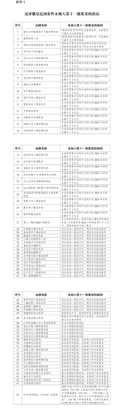 以下是过评数量达到条件,未被纳入第十一批集采的药品名单。