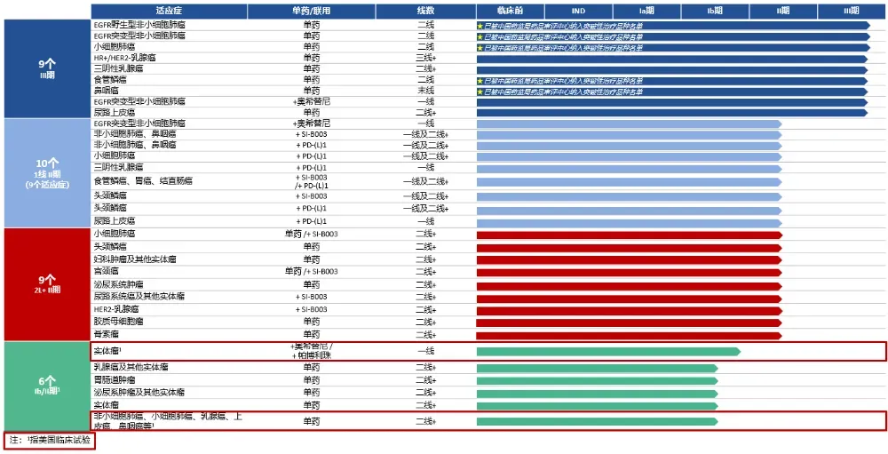 目前,SI-B003正在中国进行作为晚期实体瘤单一疗法以及探索联合百利天恒其他管线候选药物的联合治疗的II期研究。