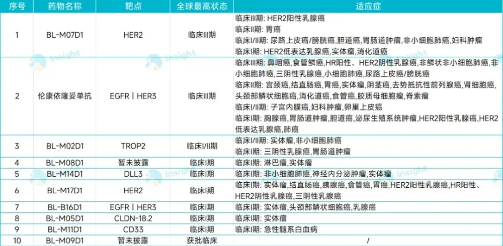 除了BL-B01D1,百利天恒还基于HIRE-ADC平台布局了近10款ADC管线,包括BL-M07D1(HER2 ADC)、BL-M11D1(CD33 ADC)、BL-M05D1(Claudin18.2 ADC)、BL-M14D1(DLL3 ADC)、BL-B16D1(EGFR×HER3双抗)、BL-M17D1(HER2 ADC)、BL-M08D1、BL-M09D1。
