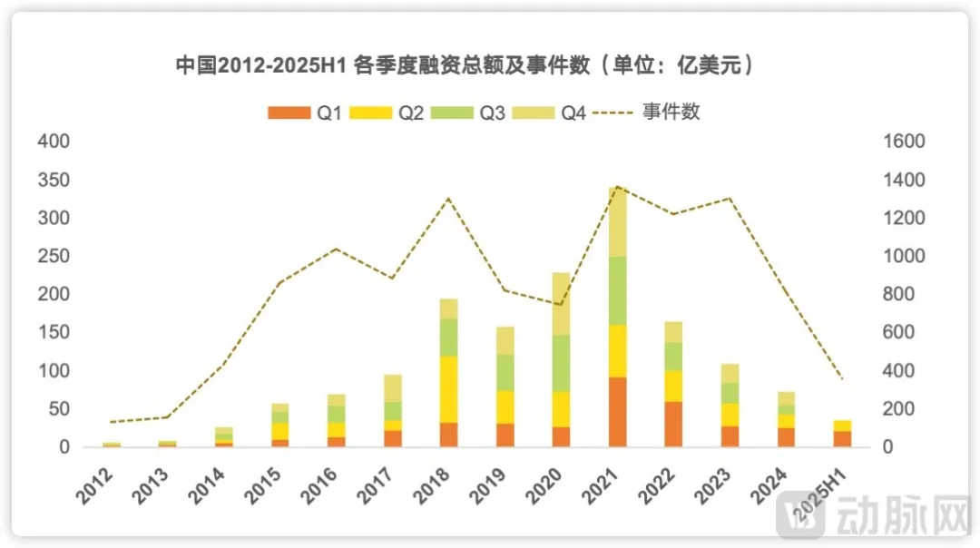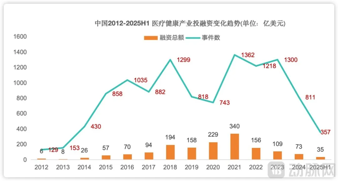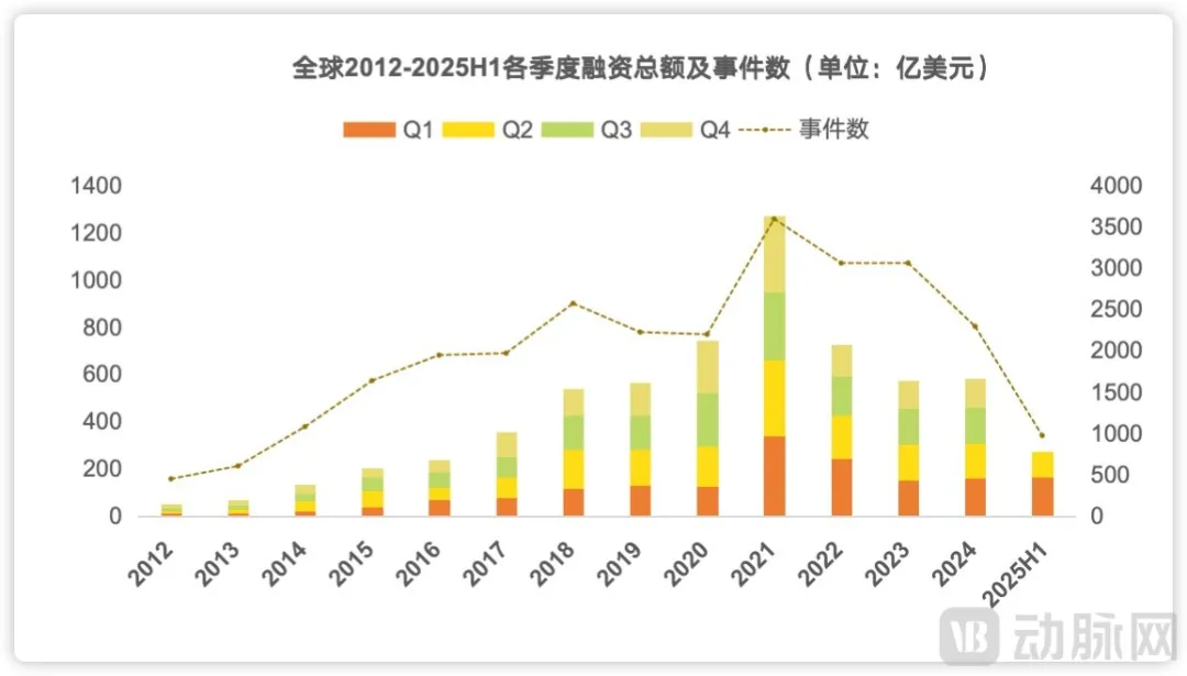 2012年-2025H1全球医疗健康产业融资变化趋势