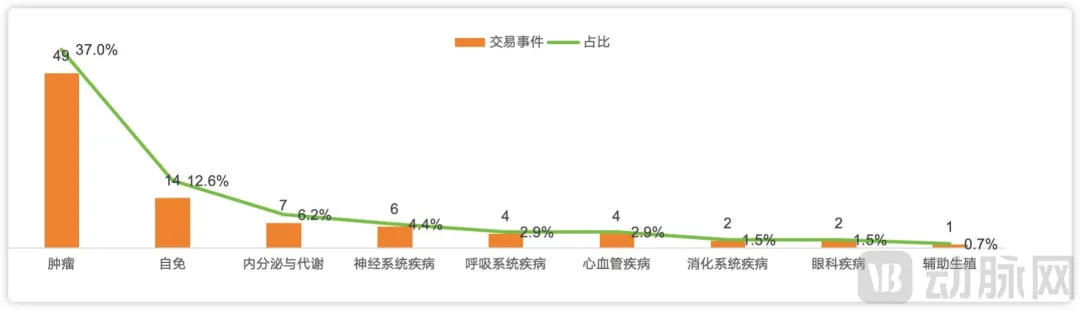 细分领域方面,器械与耗材类项目规模首次反超生物医药,呈显领先态势。