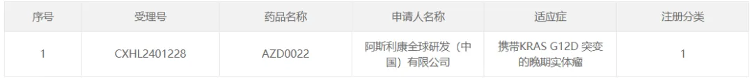 1 月 15 日,阿斯利康的 AZD0022 在国内获批临床,适应症为携带 KRAS G12D 突变的晚期实体瘤。