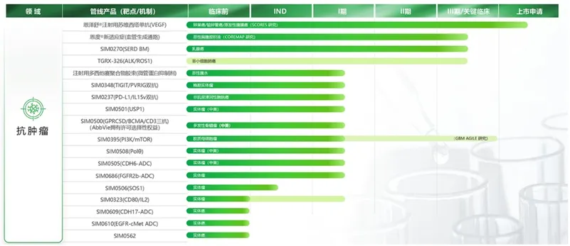 先声药业抗肿瘤管线