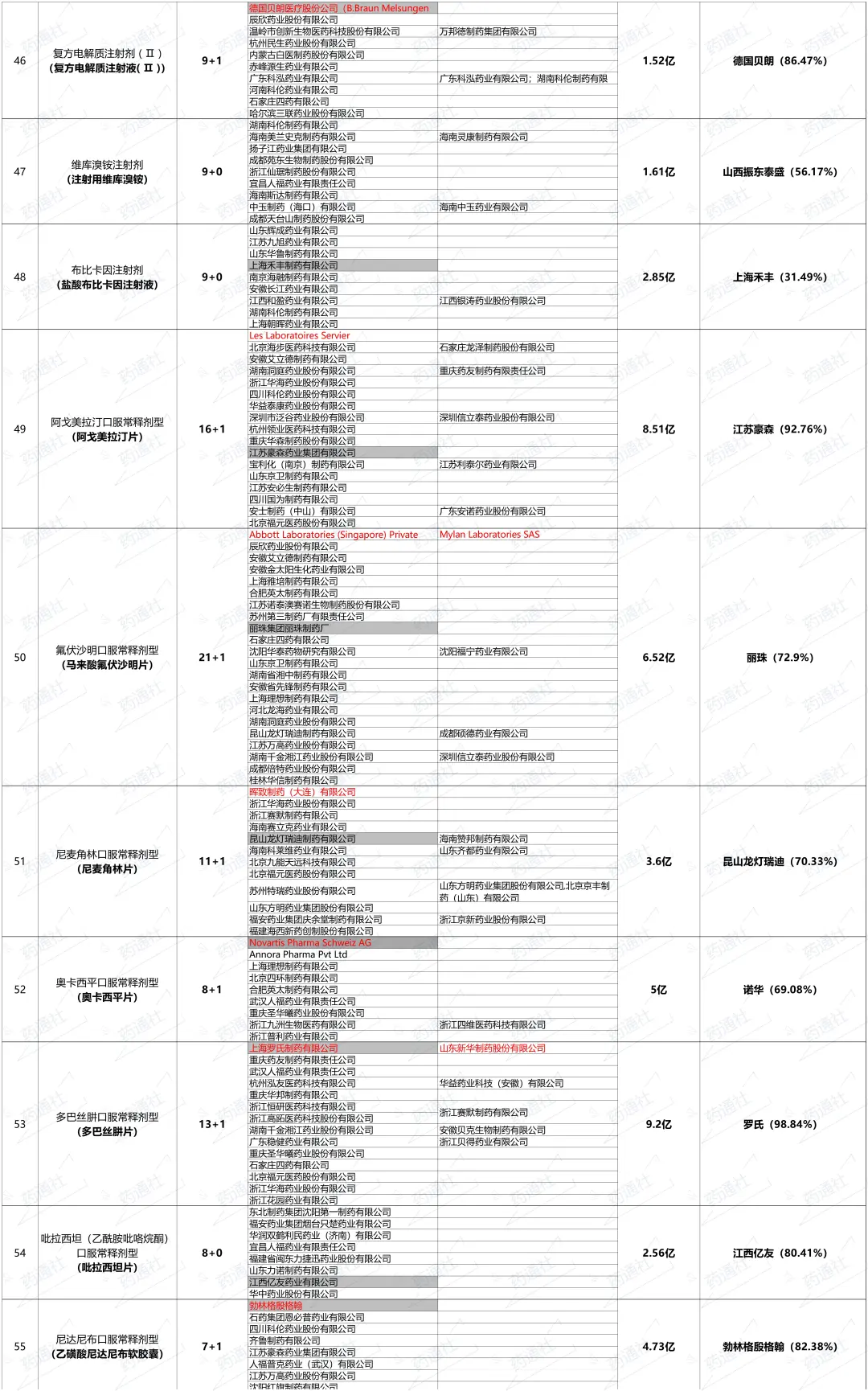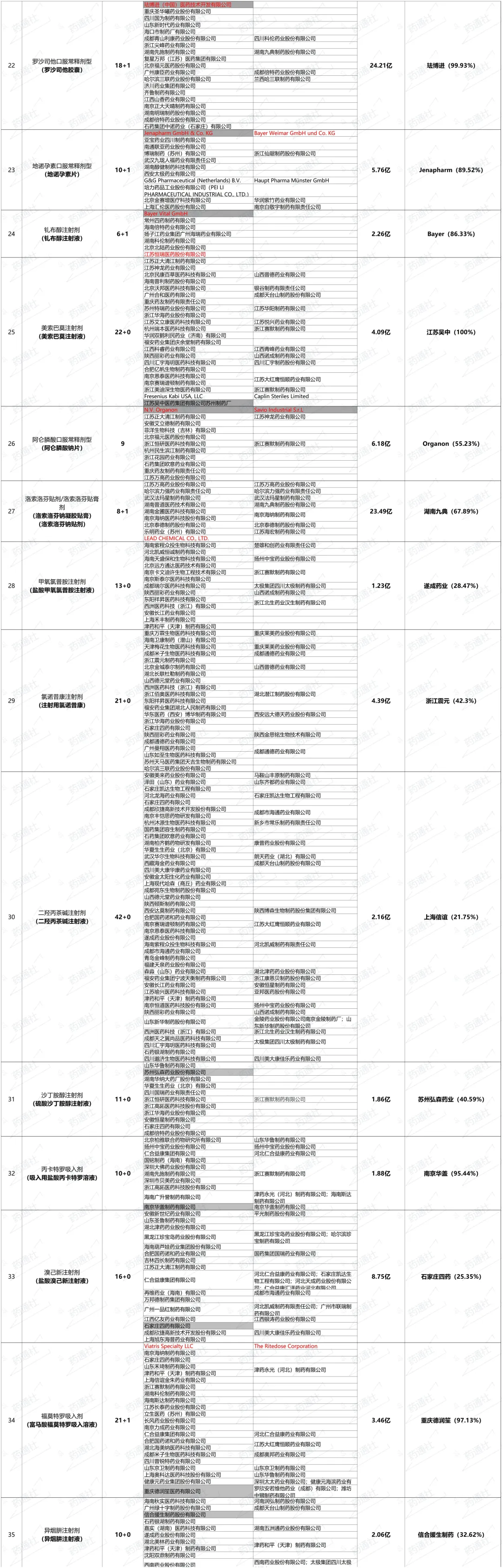 洛索洛芬也是一样,九典的单片销售价一直很高,市场也很大,这样的品种势必是要希望早进集采的,然而后面还有二十多家在审批,没赶上集采实属可惜。