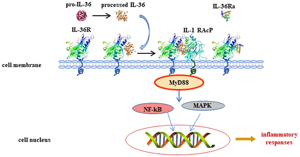白细胞介素36(IL-36)是炎症性疾病的重要介质,属于IL-1家族IL-36通过IL-36受体( IL-36R)和IL-1受体辅助蛋白(IL-1RAcP)介导细胞内信号转导。