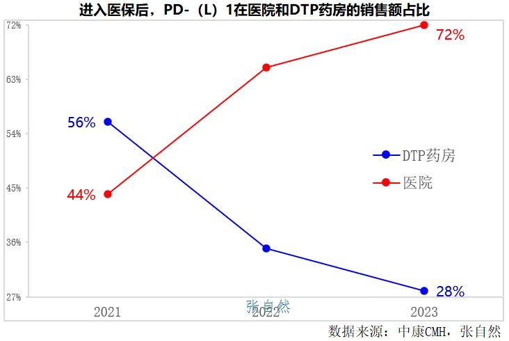 进入医保后,PD-(L)1的销售渠道格局出现反转。