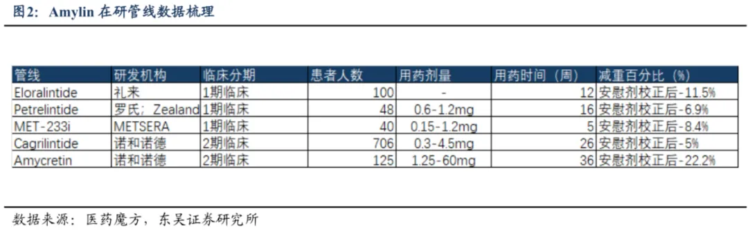 除罗氏、艾伯维两家MNC通过BD交易得到Amylin资产,礼来、诺和诺德、阿斯利康均有自己的Amylin资产,尤其是诺和诺德进度全球领先。