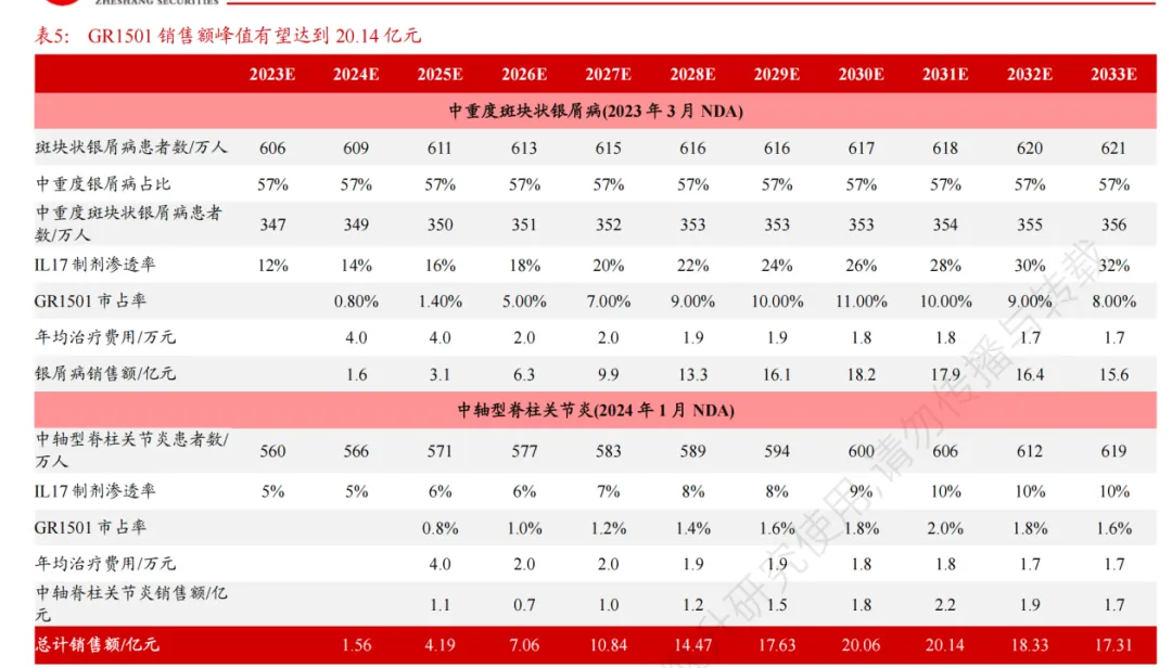 整体算下来,在银屑病适应症上,LZM012的销售峰值在23-25亿元左右。