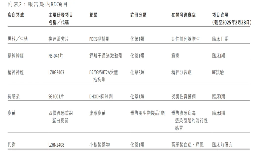 丽珠集团除了这条创新药管线之外,有没有其它的创新药管线给人带来耳目一新的感觉?也不是没有,但确实不多。它是采取自研+BD双轮驱动的战略,自研和BD方面管线如下图所示: