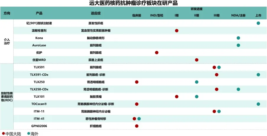 截至目前,远大医药是进入中国III期临床研究中诊断和治疗类RDC创新药总计储备最多的企业,也是全球范围内在核药抗肿瘤领域拥有最丰富产品管线和诊疗一体化布局的创新药企之一。