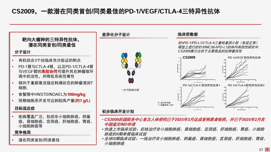 2025年7月7日,基石医药宣布PD-L1/VEGF/CTLA-4三抗药物CS2009,全球多中心I/II期临床研究正在澳大利亚和中国积极招募患者,并计划扩展至美国进行II期入组。